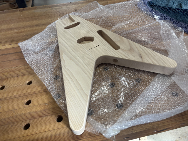 フライングV風のテレキャスターを作っている塾生さんのネック加工や段取りを一緒に確認したり、「ここは焦らなくていいですよ」と話しながら、少しずつ形を整えていく時間がありました。