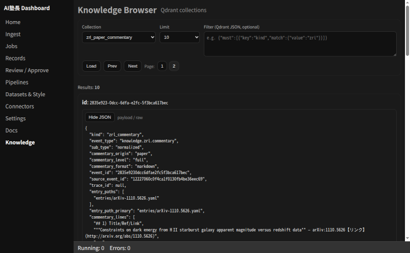 AI塾長ダッシュボードに、知識を眺められるブラウザ機能を少しずつ足しています。