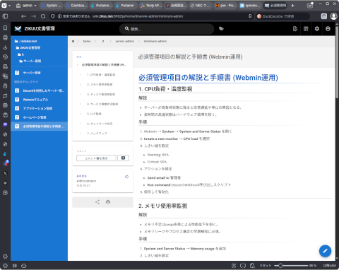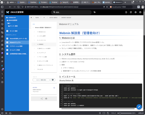ZIKUUでは常時稼働しているサーバーが4台あり、サーバー自体の管理にWebminを、サーバー上で稼働しているアプリケーションの管理にはPortainerを使っています。Linux Server + Webmin + Portainerという構成のものと、Proxmox + Linux VM + Portainerという構成ものがあります。