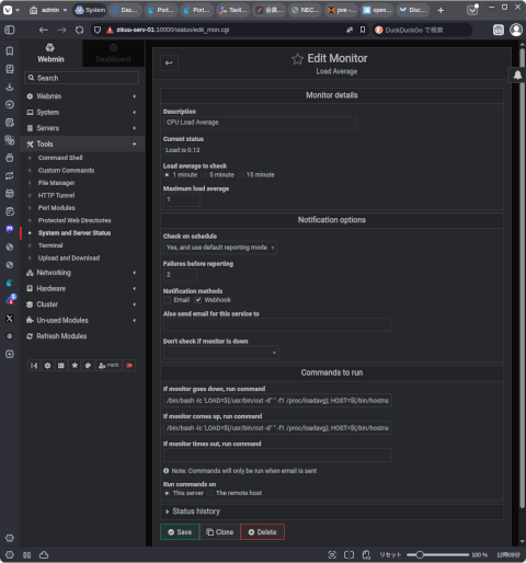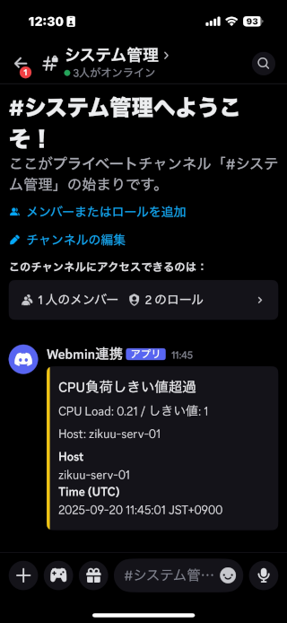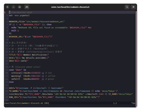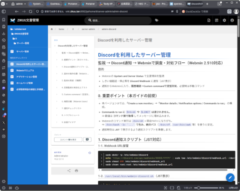 WebとDiscordを連携させる仕組みの説明とその手順を示した文書。日常的な監視項目について、わざわざWebminの管理画面を開かなくても「気づく仕掛け」です。