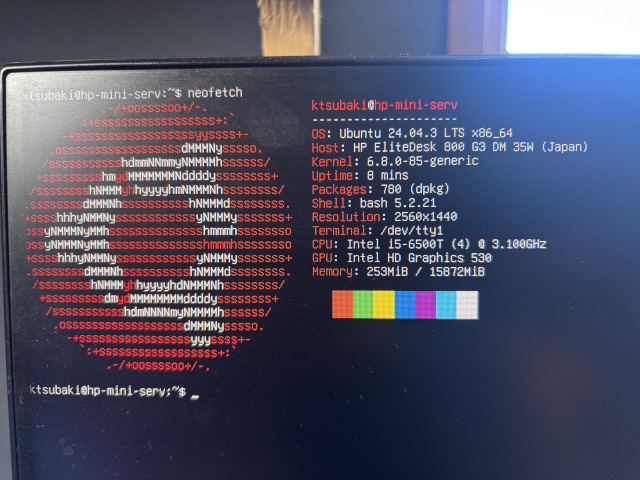 購入したのは第6世代Core i5 6500T搭載のHP製ミニPC。サーバー系のLinuxを使うなら、これくらいのPCでも十分に実用になります。