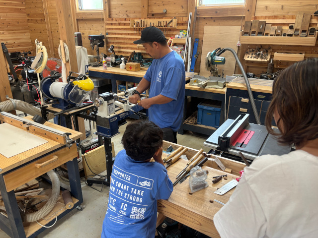 一年ほど前に木工旋盤体験教室にいらしたご家族がいらして、小笛を作る体験をしていただきました。