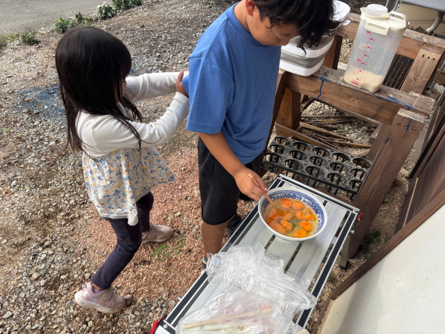 親子丼を作ってくださり、早めの夕飯をみんなで食べました。