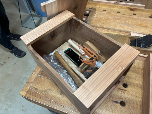 木工初心者におすすめなのが、この大工さん道具箱。簡単な構造ですが、木工の基本が詰まっています。