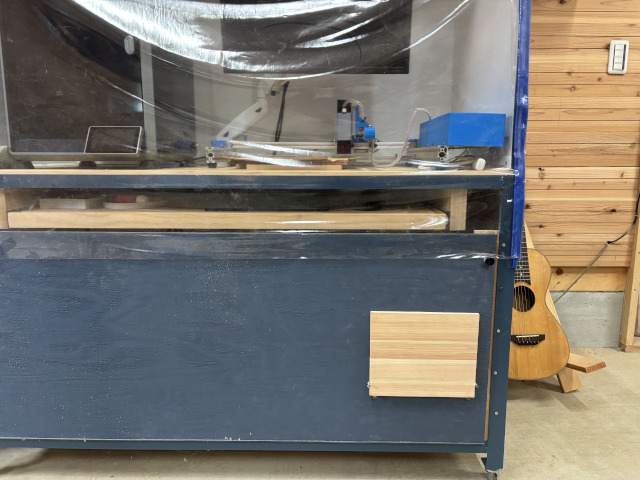 台の中のPCの電源を入れるのに、前カバーを外さなければならないのが面倒だったので、穴を開けて蓋を取り付けました。