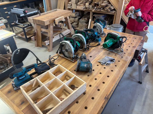 工具類を使いっぱなしで帰ってしまうことが多く、定期的に徹底的な掃除をします。