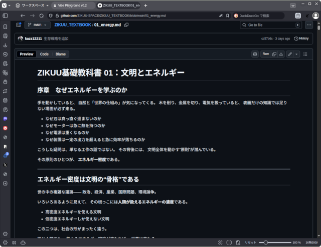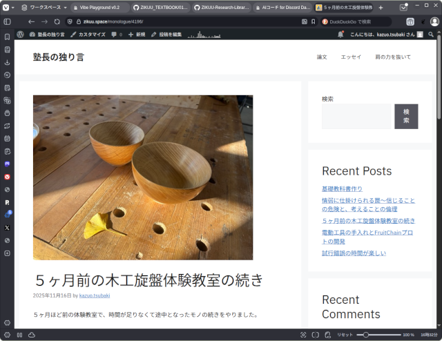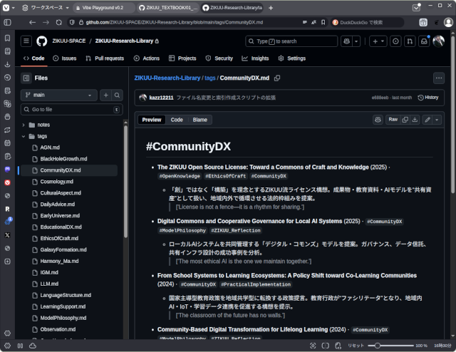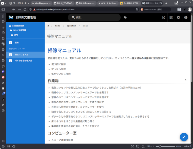 ZIKUUの場合は、日々の活動を記録するブログやDiscordの投稿、開発を予定している運用アプリ(機械や道具の扱いやメンテナンス情報を管理)、エッセイ、論文、塾内の運用マニュアルなどが、テキストと画像で相当量蓄積されていますが、それだけだと場の一部を表すだけに過ぎません。