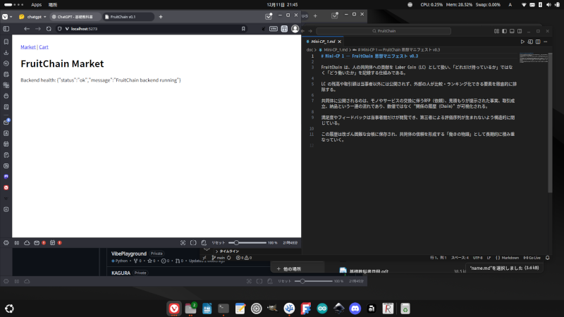 コア機能の開発が終わったら、v0.2で、各機能の改善やUIの強化と、共同体間取引を可能にする分散台帳への対応をします。