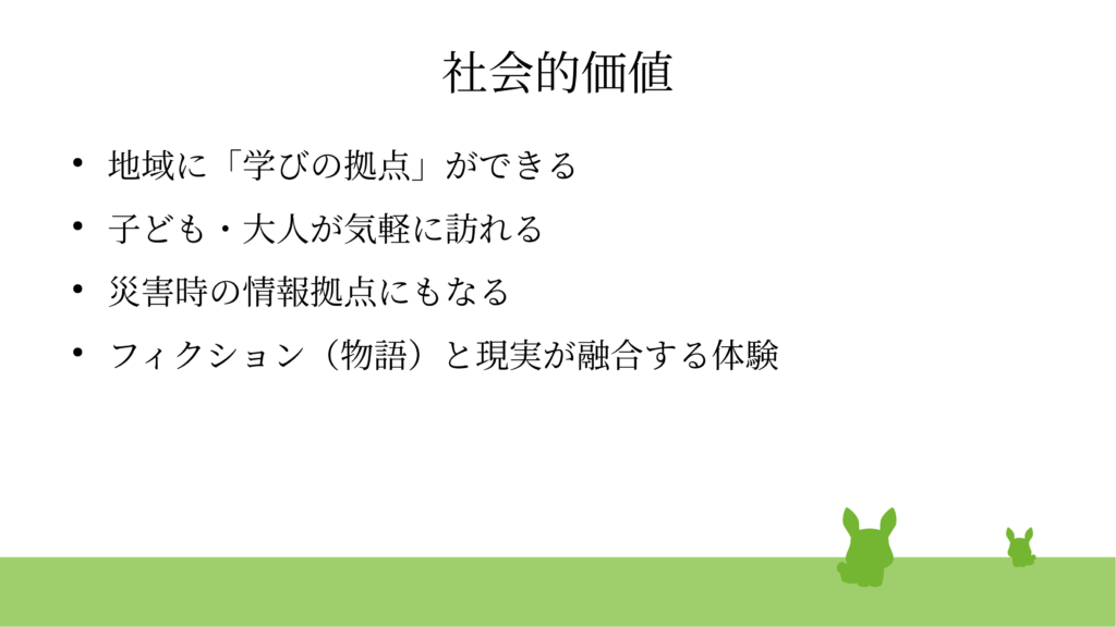 この設備は、気軽に立ち寄れる場所、勉強部屋、災害時の拠点になるでしょう。