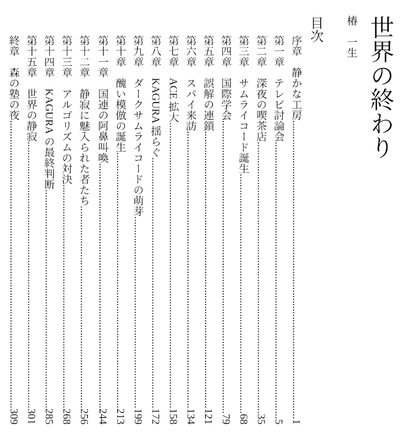 これが、すごく面白かったので、小説化しようと思って書いたのがこの『世界の終わり』です。軽いSFドタバタ劇になっています。