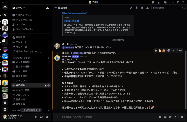 塾生の場合は、VPNを経由して塾のサーバーのチャットアプリが使えますが、塾生ではないコミュニティメンバーには、このAIチャットボートが対応します。