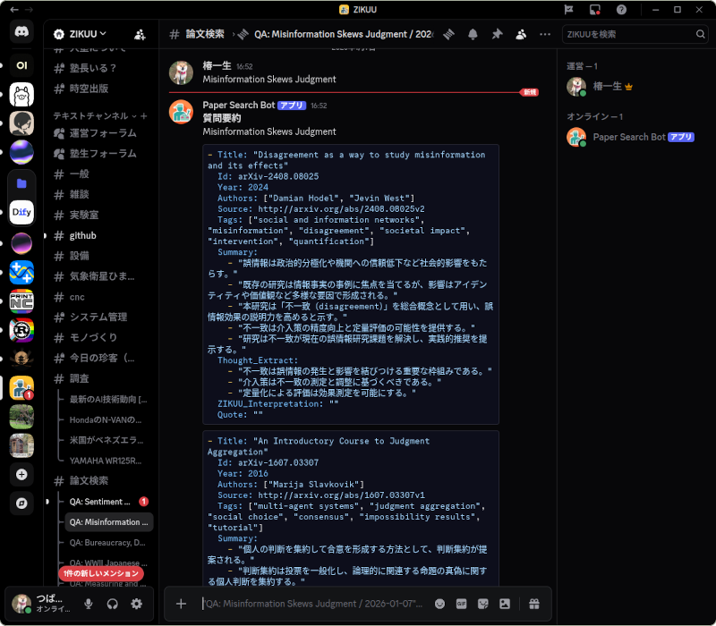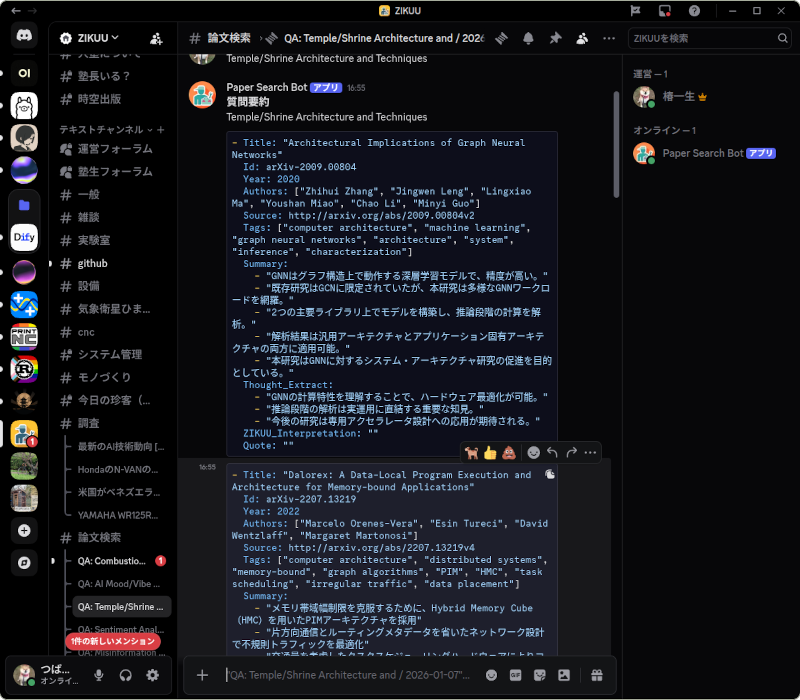 - ユーザーの入力から検索条件を作り、スレッドを新たに作成し、論文サイトを検索