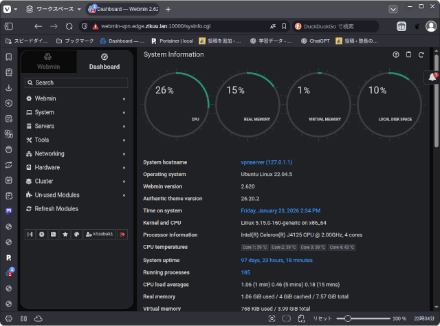 Celeron J4125搭載PCのVPNブリッジのスタンバイ機の準備をしました。