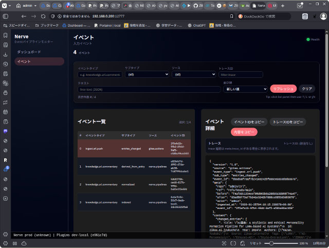 今日は、NerveのWeb UI(キューとイベントの監視画面)の日本語化、フィルターや並べ替えの機能の実装をしました。