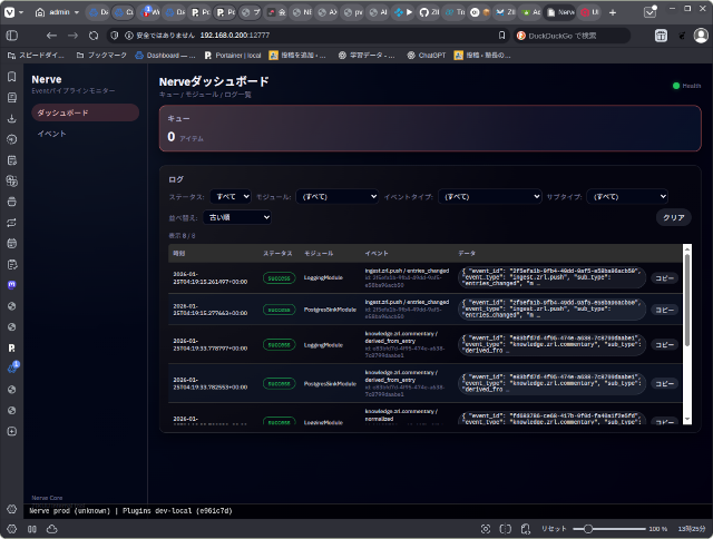 今日は、NerveのWeb UI(キューとイベントの監視画面)の日本語化、フィルターや並べ替えの機能の実装をしました。