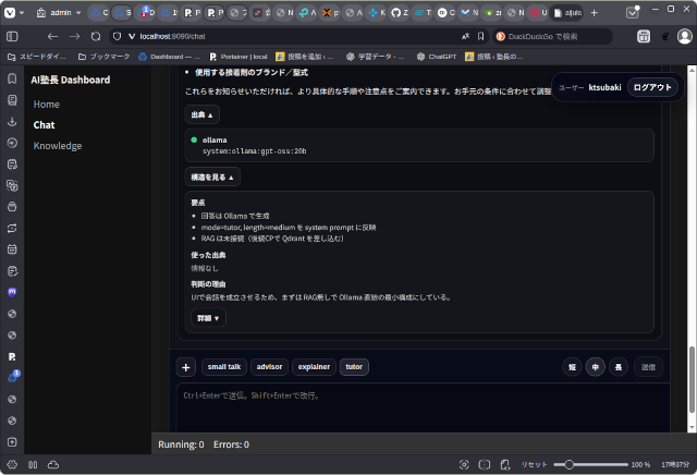 「AI塾長ダッシュボードにチャット機能を追加する」への1件のフィードバック