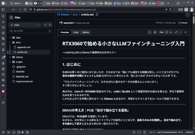 その一つが安価なPCでできるLLMのファインチューニング教材の開発です。