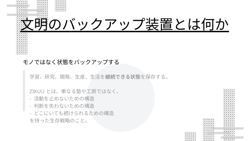 来年中には完成させたいと思っているZIKUU Seedという計画があります。