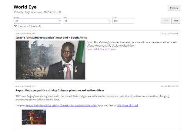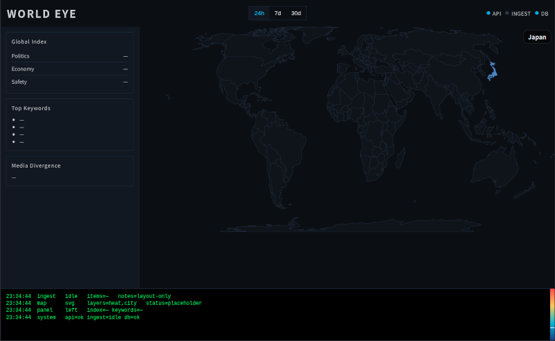 World Eyeは主要報道機関のニュースを収集して、世界の温度を測るためのアプリケーションです。