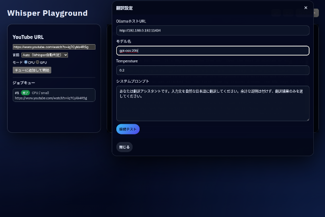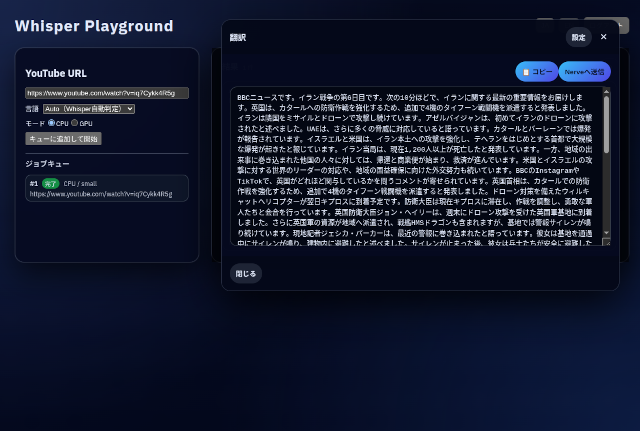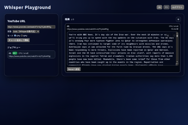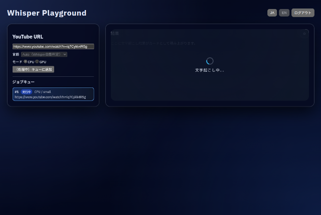すでに簡易版というか軽量版のWhisper Playgroundを本番環境で動かしていますが、しっかりした作りの版を本番環境に載せました。
