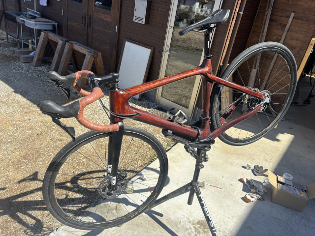 来月から大阪のシマノ自転車博物館で開催される特別展に展示する、WP Bike(私のロードバイクブランド)の木製フレームロードバイクを洗車しました。