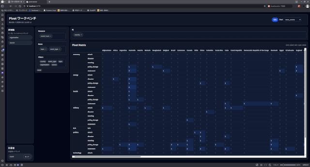 今日は、国際ニュースを700件ほどPivotに投入して、だいぶ世界の景色が見えるようになってきました。