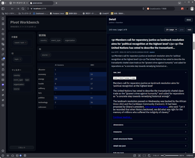 複数観測軸で切り取られた表のセルをクリックすると詳細表示になります。