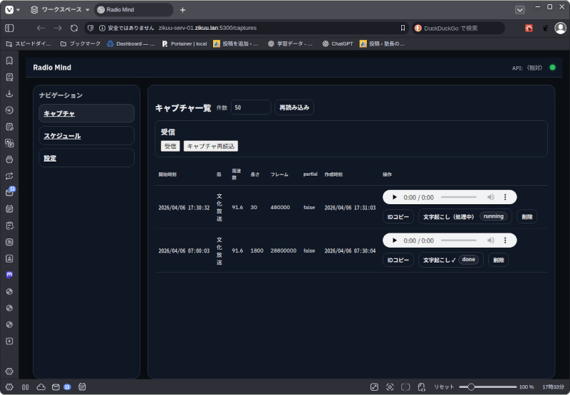 Radio Mindが放送を受信して文字起こしをすると自動的にその結果をGiteaのリポジトリにプッシュします。