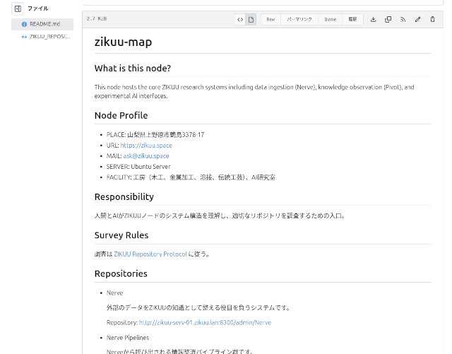上のスクリーンショットは、zikuu-mapのREADME.mdを表示した様子です。