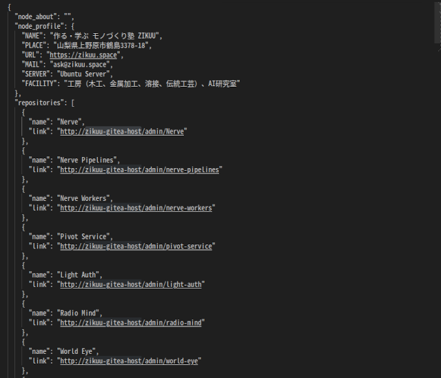 ノードのプロフィールやリポジトリの一覧が取得できます。