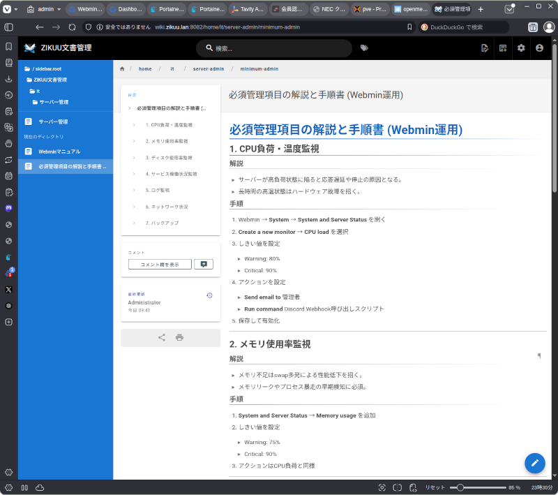 サーバー管理をスタッフに引き継げるように、管理方法を文書しています。 という方針で作っています。中にはDiscordと連携した機能もあったりして、小さな会社やコミュニティーでも活用できるように思います。 最近は、多少問題 … 続きを読む